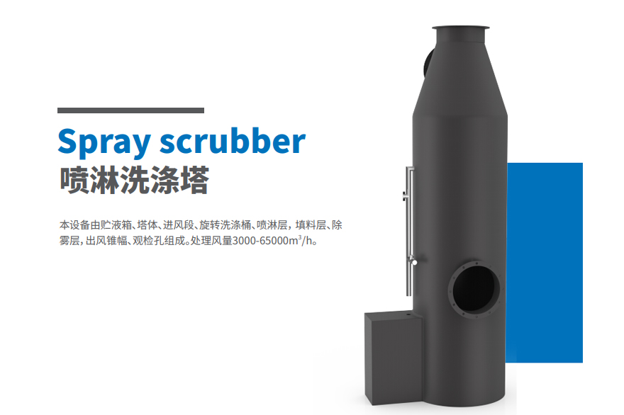含塵廢氣從風(fēng)管進(jìn)入凈化塔,經(jīng)過旋轉(zhuǎn)洗滌桶的時(shí)候,風(fēng)帶變快,從 而使填料球帶動(dòng)廢氣運(yùn)轉(zhuǎn),在洗滌橋里,通過噴灑水霧,使含塵廢氣 與水霧充分混合并且反應(yīng),凈化后的廢氣,從除霧層脫水除霧后由風(fēng) 機(jī)排入大氣,吸收液在塔底經(jīng)水泵增壓后在箱頂噴淋霧化而下,最后 回流至箱底循環(huán)使用。